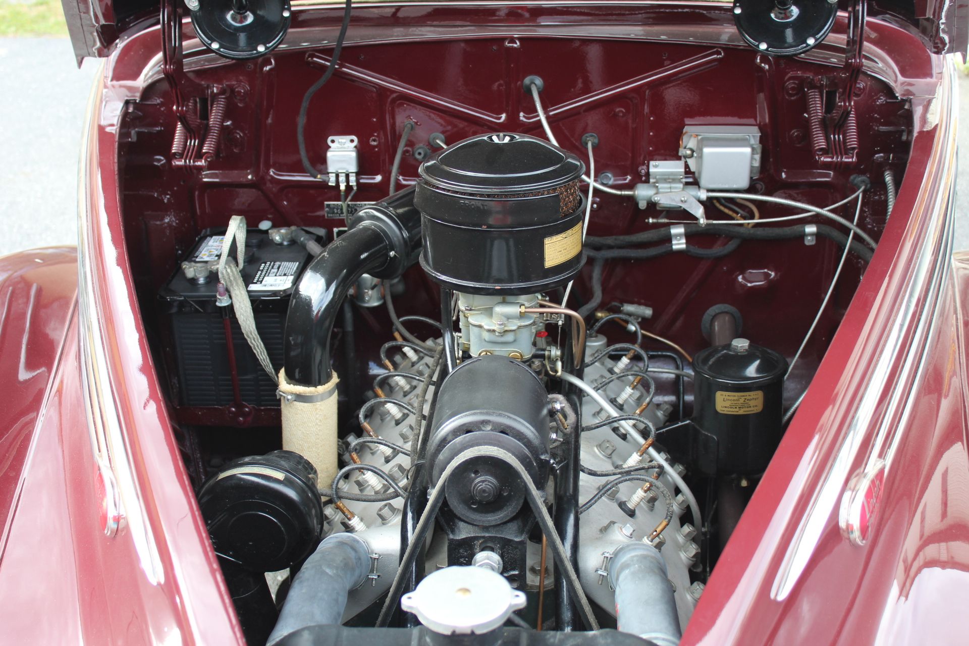 1939 Lincoln Zephyr. Owned by one family since 1940. V-12 Engine with aluminum heads, new radiator, 3 speed transmission, Columbia 2 speed differential, AM radio, correct bumper jack & tool kit; correct LZ case for 6-volt Optima battery. AACA George M. Holley Excellence Award and many awards from LZOC. Beautiful car! |